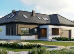 HomeKONCEPT 13 to jeden z naszych najbardziej docenianych projektów. Ten dom urzeka stylem, unikatowymi rozwiązaniami i wyjątkowym wykończeniem. Nowoczesność i ponadczasowość widać w każdym elemencie domu – począwszy od materiałów elewacyjnych i wykończeniu dachu do praktycznych i przestronnych wnętrz. Oryginalna, rozłożysta bryła umożliwiła czytelny podział przestrzeni. Strefę dzienną tworzy otwarta kuchnia ze spiżarnią, jadalnia oraz salon z centralnie zlokalizowaną częścią wypoczynkowo – kominkową. Antresola wychodząca na salon dodaje wnętrzu przestronności i wyjątkowego charakteru. Gabinet, zlokalizowany po przeciwnej stronie domu, umożliwia pracę z dala od zgiełku dnia codziennego. Z gabinetu można wyjść na taras, gdzie można się zrelaksować i odprężyć na świeżym powietrzu. Część gospodarczą tworzy duży, dwustanowiskowy garaż, kotłownia z pralnią oraz garderoba.