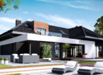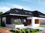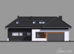 HomeKONCEPT-37 to projekt piętrowego domu o nowoczesnej i wyrazistej stylistyce. Prostą, spójną bryłę urozmaica z zewnątrz okalające dom belkowanie oraz efektowna elewacja. Połączenie białego i grafitowego tynku z naturalnym kamieniem elewacyjnym nadaje całości wyjątkowej elegancji.